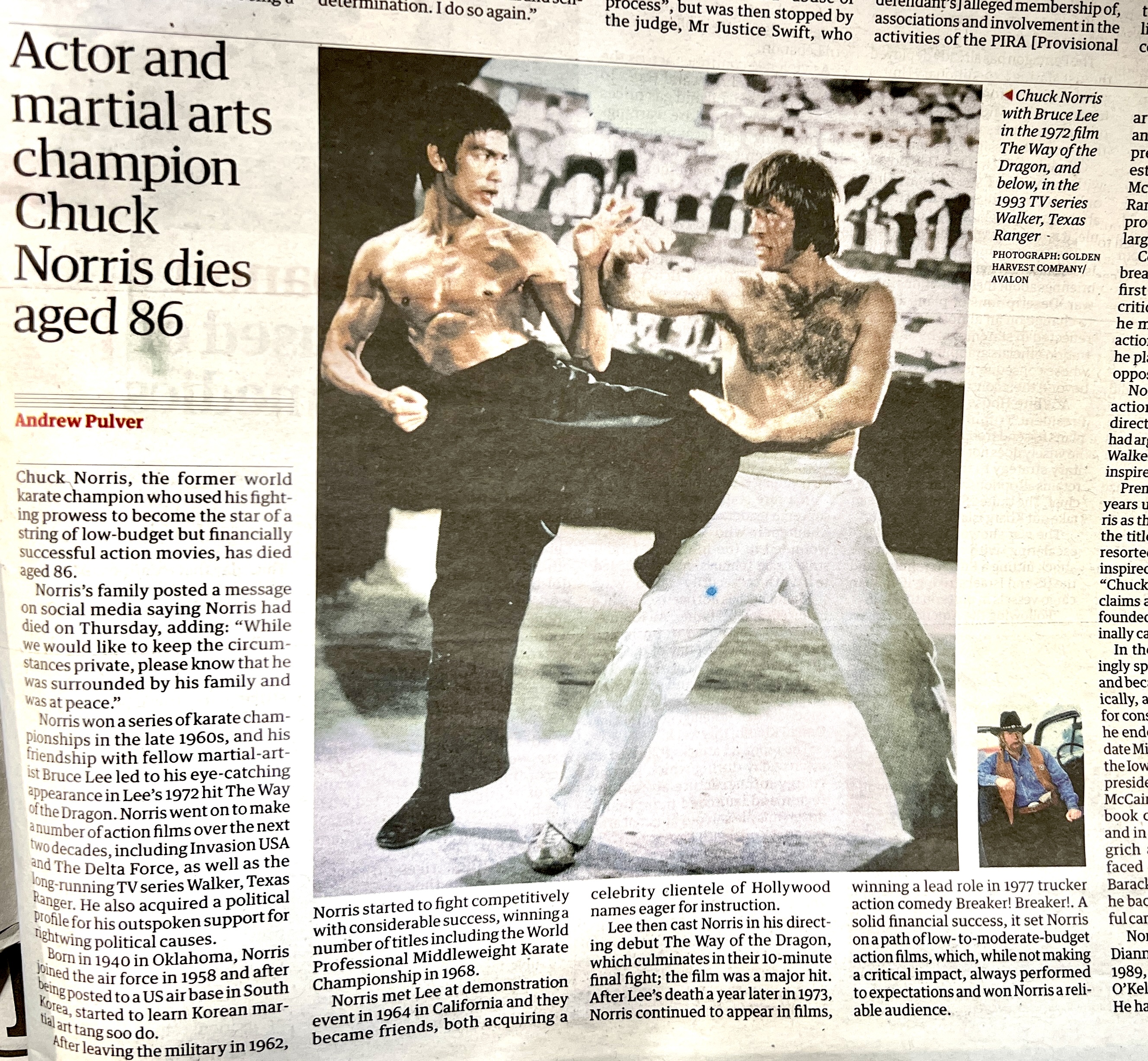 Legendary martial arts actor BRUCE LEE stars as Tang 'Dragon' Lung and CHUCK NORRIS as Colt in the Golden Harvest Company Ltd. action drama, 'Return of the Dragon.